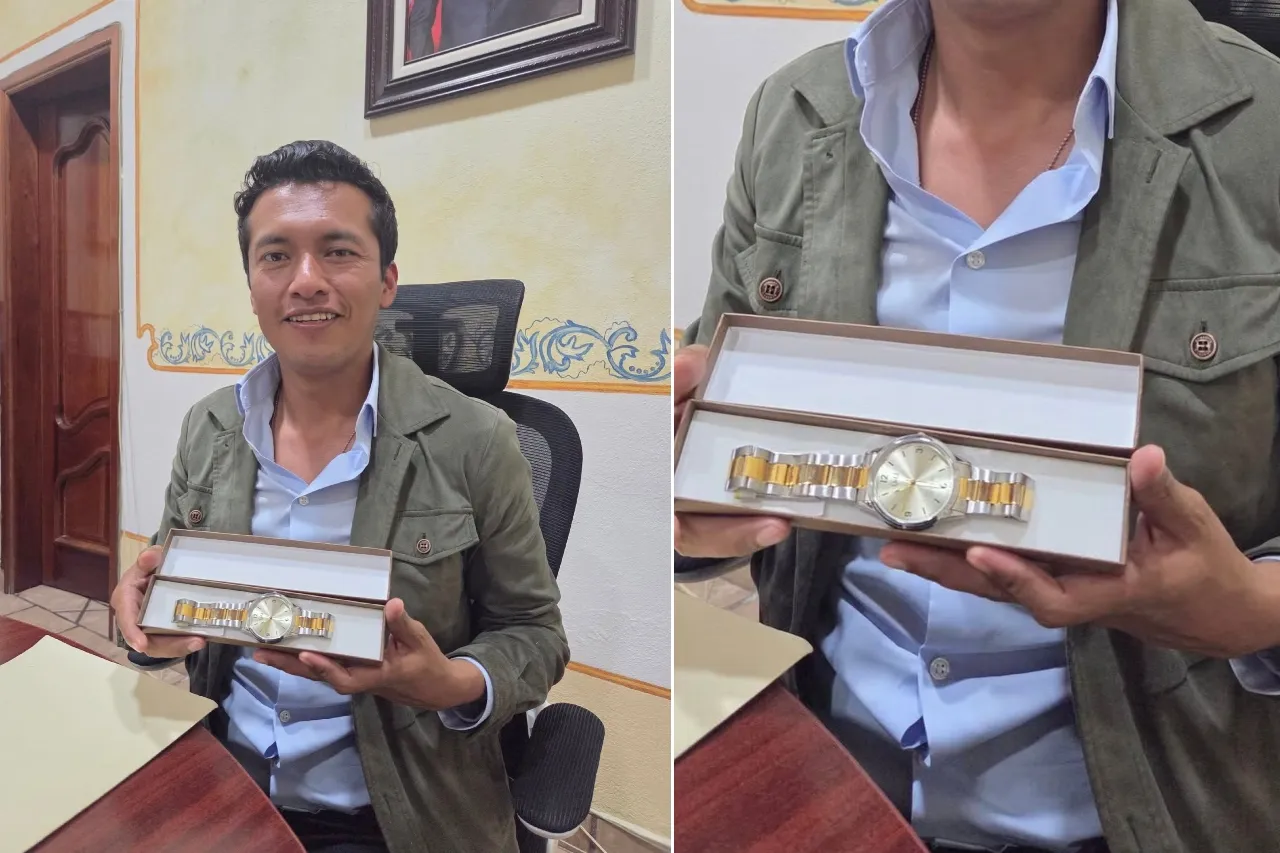 El edil aseguró que niños de secundaria se lo obsequiaron y se trata de una versión fake y no un reloj original de la marca El alcalde...