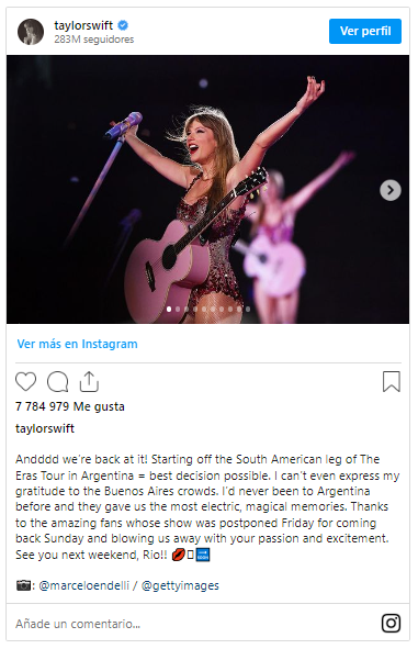 En tanto, la exitosa adaptación cinematográfica de la gira, Taylor Swift: The Eras Tour, ha ganado aproximadamente 250 millones de dólares.