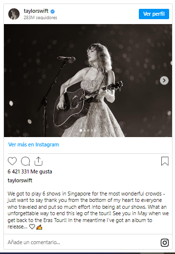 Taylor Swift está en el mejor momento se su carrera consolidándose como la reina de la industria musical, para muestra de ellos, el éxito de su gira Eras Tour, que agotó entradas alrededor del mundo y dejo a miles de personas con ganas de más.